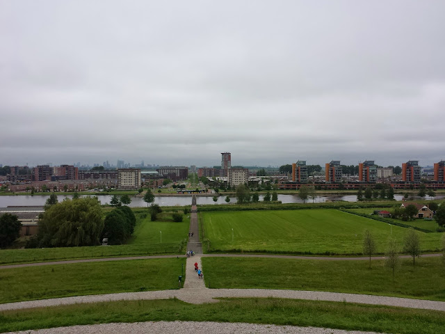 Na dat ommetje toch de top van de bult bereikt en, bijkomend van de beklimming, van het uitzicht over de Oude Maas en Carnisselande genoten. Met een zonnetje had het wellicht mooier geweest, maar het was zeker de moeite waard.